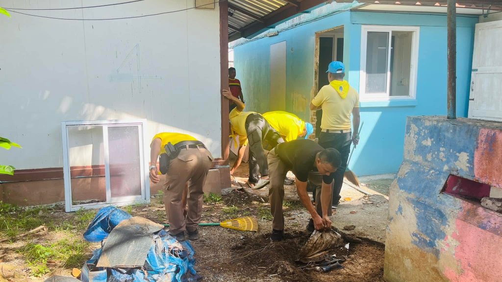 วันที่ 13 พ.ย.67 เวลา 14.00 น. พ.ต.อ.อุเทน แก้วจันทอน ผกก.สภ.สะท้อน พร้อมด้วย พ.ต.ท.บุญยฤทธิ์ รักษ์เพชร สว.อก.สภ.สะท้อน พ.ต.ท.อัครพัชร์ สุวรรณนิมิตร์ สว.(สอบสวน)หน.คดี สภ.สะท้อน พ.ต.ต.พงศพัฒน์ ยะโกบ สวป.สภ.สะท้อน ปล่อยแถว ข้าราชการ สภ.สะท้อน ร่วมทำกิจกรรมจิตอาสา Big cleaning Day ที่ทำการและเก็บกวาดอาคารสถานที่ ให้มีความสะอาด เพื่อรองรับการใช้บริการของประชาชน