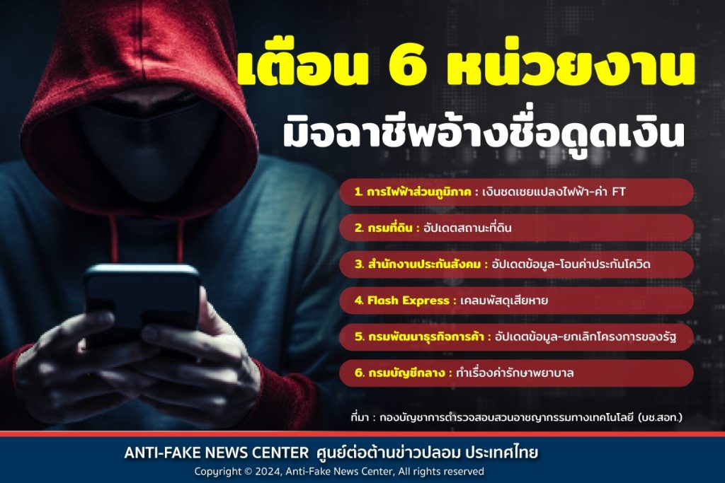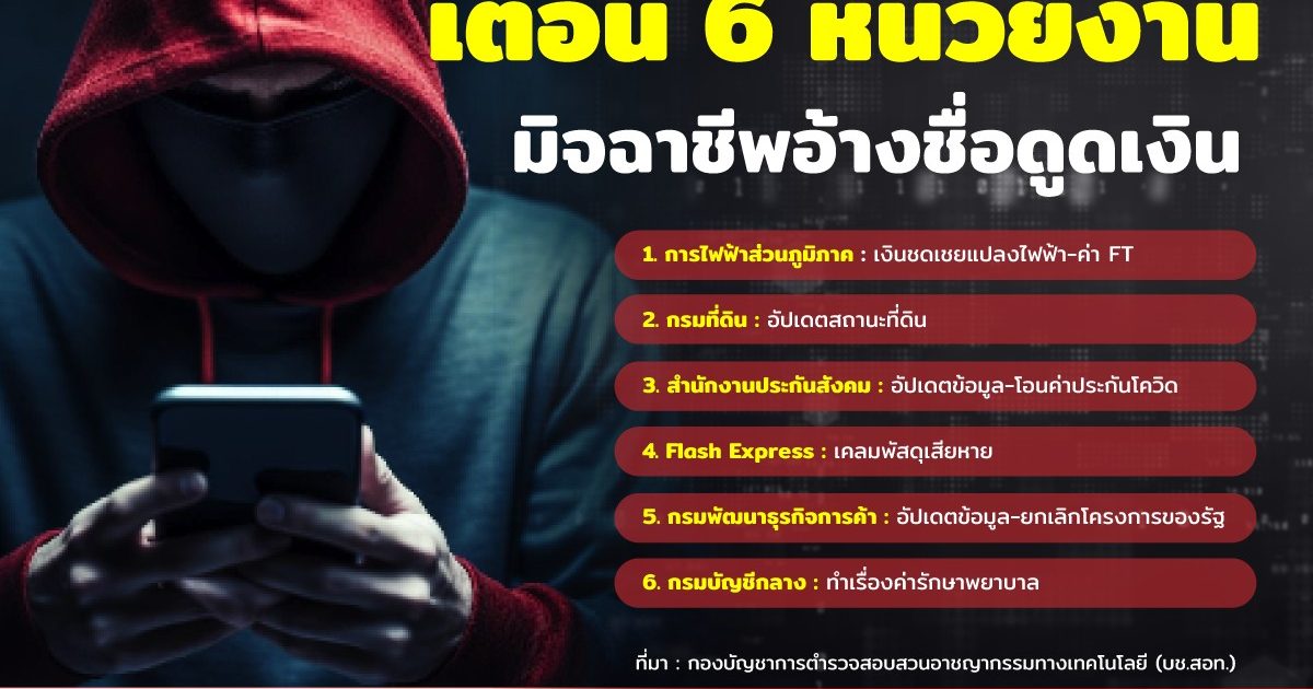 เตือน 6 หน่วยงาน มิจฉาชีพแอบดูดเงิน 15 กันยายน 2022 โดย admsathon / ข่าวประชาสัมพันธ์,ข่าวฝากประชาสัมพันธ์ เตือนภัย