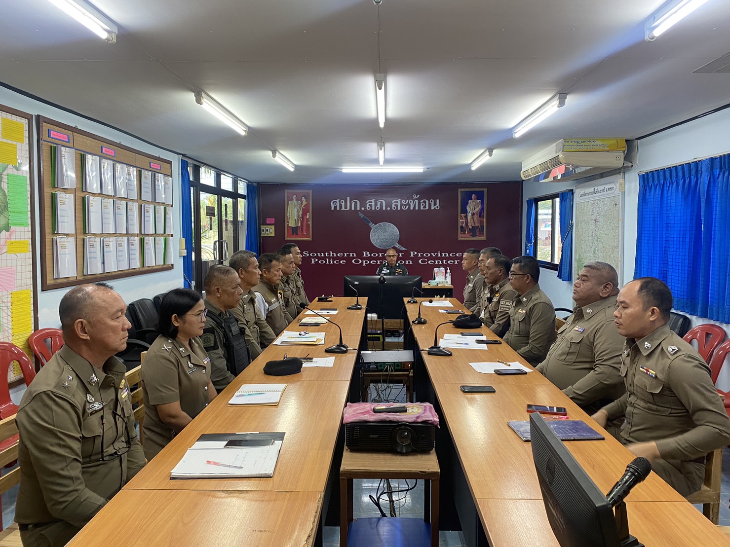 พ.ต.อ.อุเทน แก้วจันทอน ผกก.สภ.สะท้อน พร้อมด้วยข้าราชการตำรวจแผนกงานต่างๆประชุมติดตามผลการดำเนินงาน แ